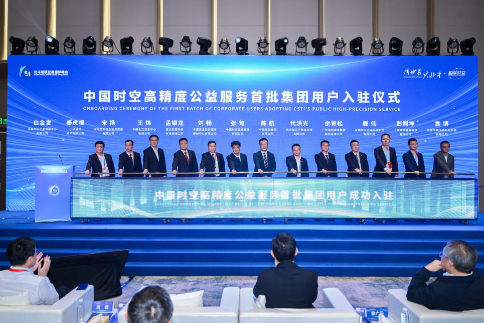 论坛举办期间,举行了“中国时空高精度公益服务首批集团用户入驻仪式”,中国时空与12家单位代表共同上台完成了入驻仪式。该服务基于“国家北斗地基增强系统”,将降低用户应用使用门槛,开启北斗高精度服务规模化、普惠化发展的新篇章。