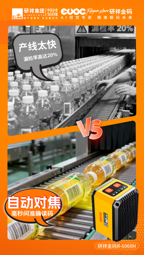 研祥金码R-6060H智能读码器高帧率特性解决了这一难题,高性能传感器+自动调焦功能,能在毫秒内完成定位、对焦、采集和解码的全过程。在该企业3m/s的桶饮品产线上,也是清晰读取。