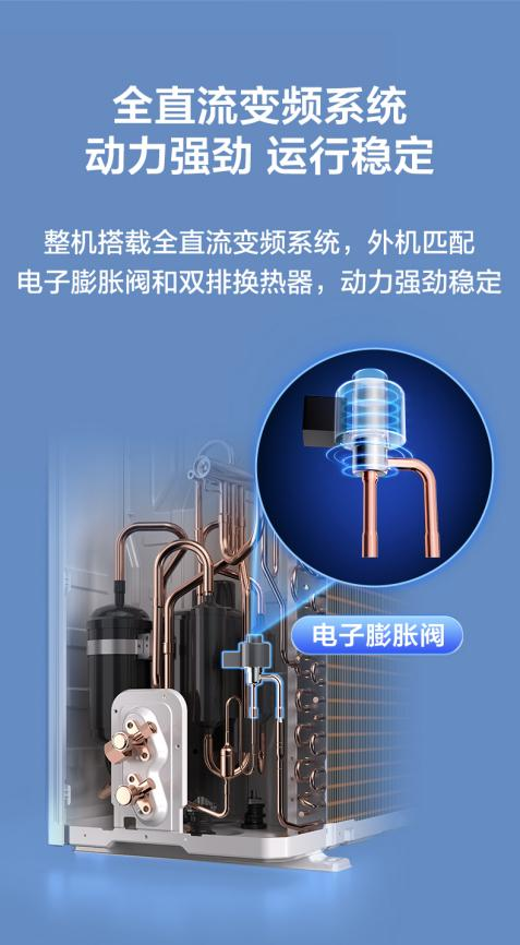 不仅如此,TCL真省电Pro风管机的动力系统同样硬核。整机搭载全直流变频系统,内机采用四排铜管设计,换热面积较普通机型提升25%,外机匹配电子膨胀阀与双排换热器,不仅动力强劲,能快速响应温度调节需求,还能保证运行过程中的稳定性,避免因部件运转不畅导致的能耗增加或故障问题,无论是高温酷暑还是严寒冬季,都能持续稳定输出舒适温度。