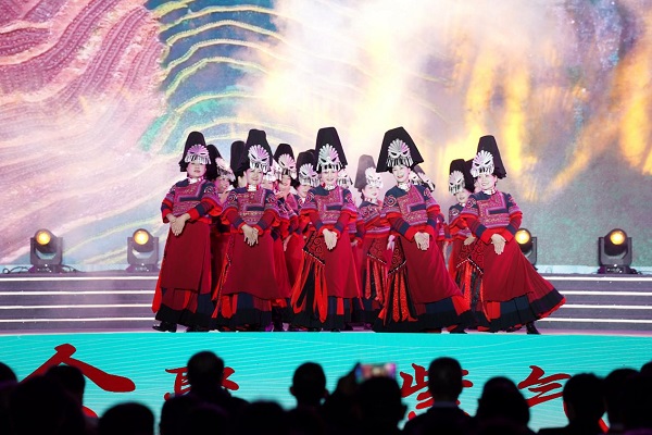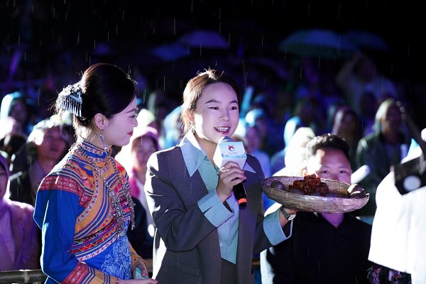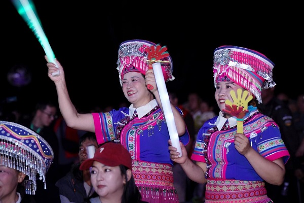 整场演出精彩不断,既有会东县选送的《云端上走来的高帽姑娘》展现彝族奥索布迪服饰的非遗之美,也有攀枝花市带来的《傈僳·情》传递出浓郁的民族风情。尾声全体演员与观众齐声合唱村歌《我在会东等你来》,千人同声、情感真挚,将晚会推向最高潮。
