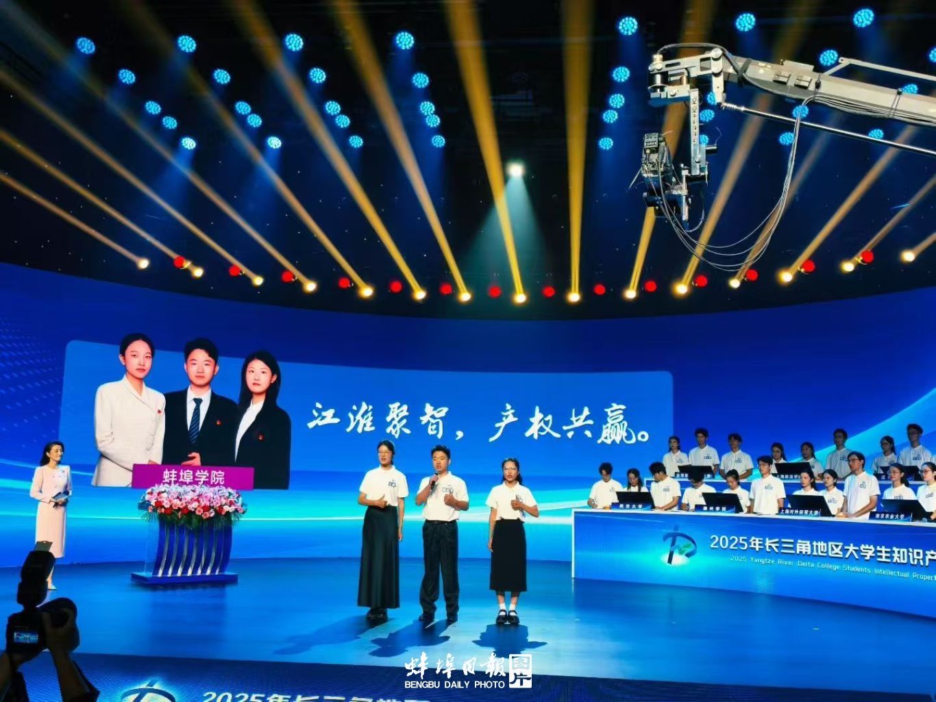 蚌埠发布客户端讯  (融媒体记者 何沛 通讯员 周宇)  近日,2025年长三角地区大学生知识产权知识竞赛决赛在江苏南京举办。来自上海、江苏、浙江、安徽三省一市的12支高校代表队同台竞技,展开激烈角逐。蚌埠学院代表队表现优异,获团体三等奖。