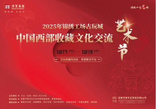 2025年10月17日至19日,第十二届锦绣工场古玩城中国西部收藏文化交流艺术节将于成都市青羊区草堂东路66号隆重举行。本届艺术节以“文化无界·收藏有声”为主线,融合展览、互动、交易、传承四大维度,打造一场兼具深度与广度的文化盛会。