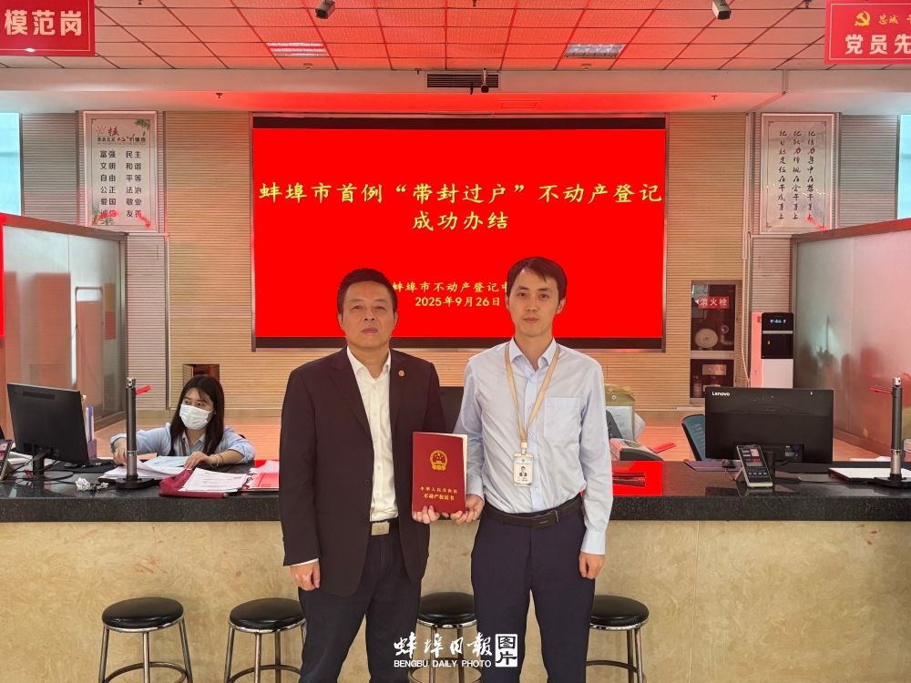 今年4月,市自然资源和规划局联合市中级人民法院、市司法局,率先在全省出台《蚌埠市不动产“带封过户”工作方案》,旨在打破传统司法拍卖的局限,为被查封资产的市场化处置开辟新路径。9月26日,随着这本特殊的证书被领取,这一创新机制完成了从政策文本到惠民实践的精彩跨越。