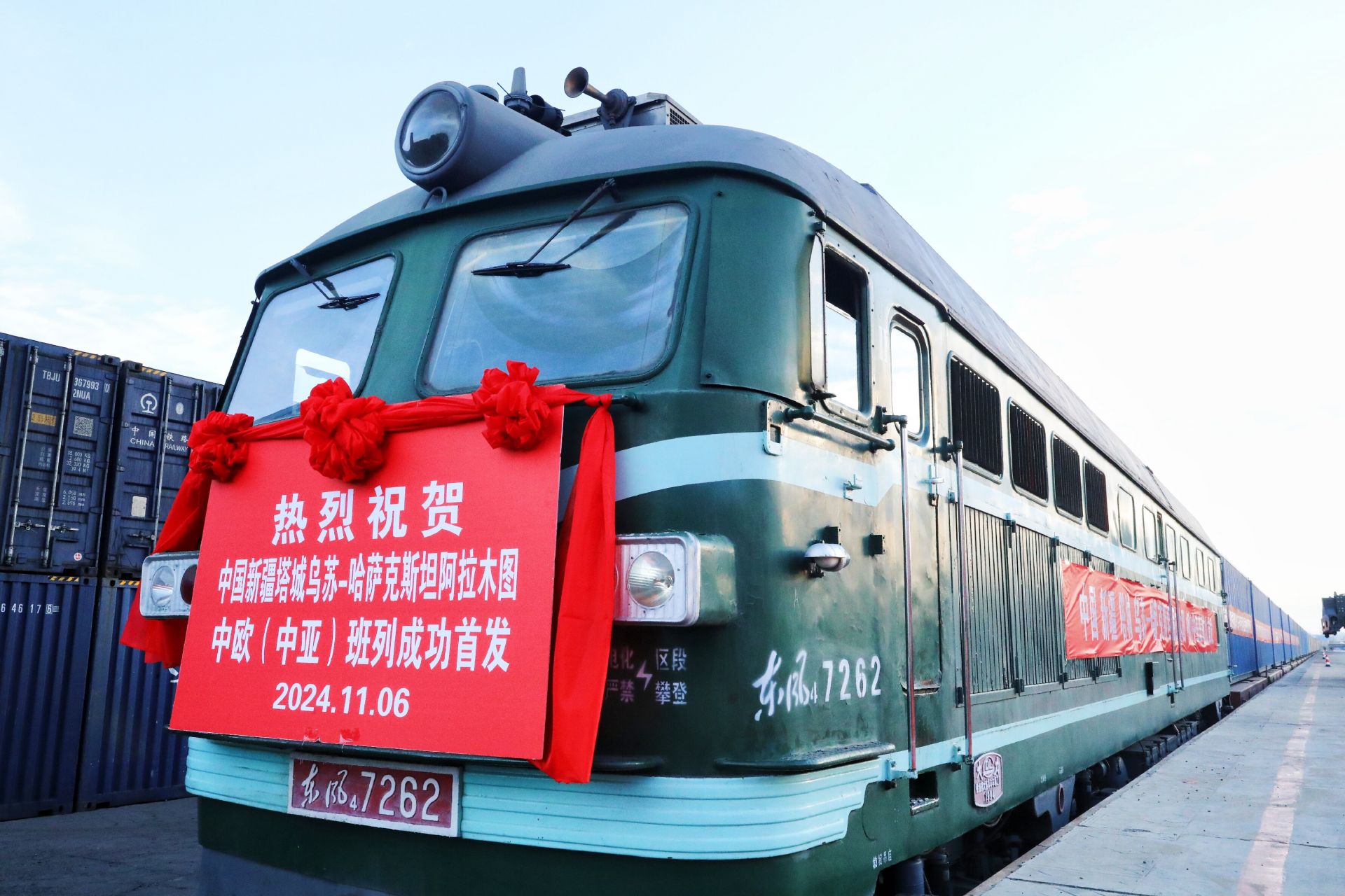 乌苏市开行首趟中欧(中亚)班列(2024年11月6日摄)。唐志阳 摄