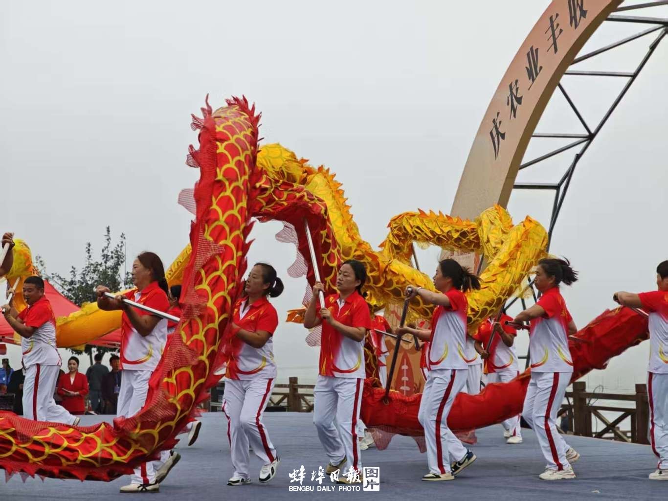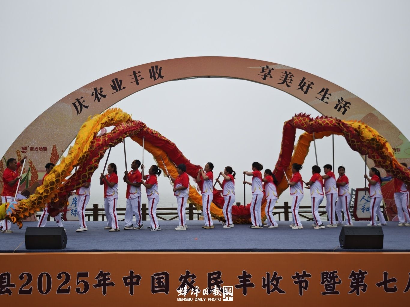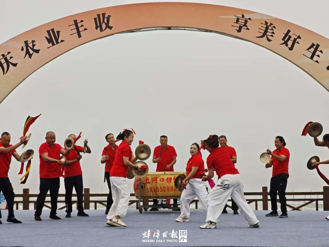 激昂的《丰收锣鼓》敲响了丰收的喜悦,磅礴的舞龙表演《龙腾盛世》舞出了新时代的豪情……开幕式上,男声独唱《咱老百姓》、五河民歌联唱《丰收年唱丰收歌》等一个个饱含乡土气息的文艺节目轮番上演,生动展现了五河人民在希望田野上的幸福生活。