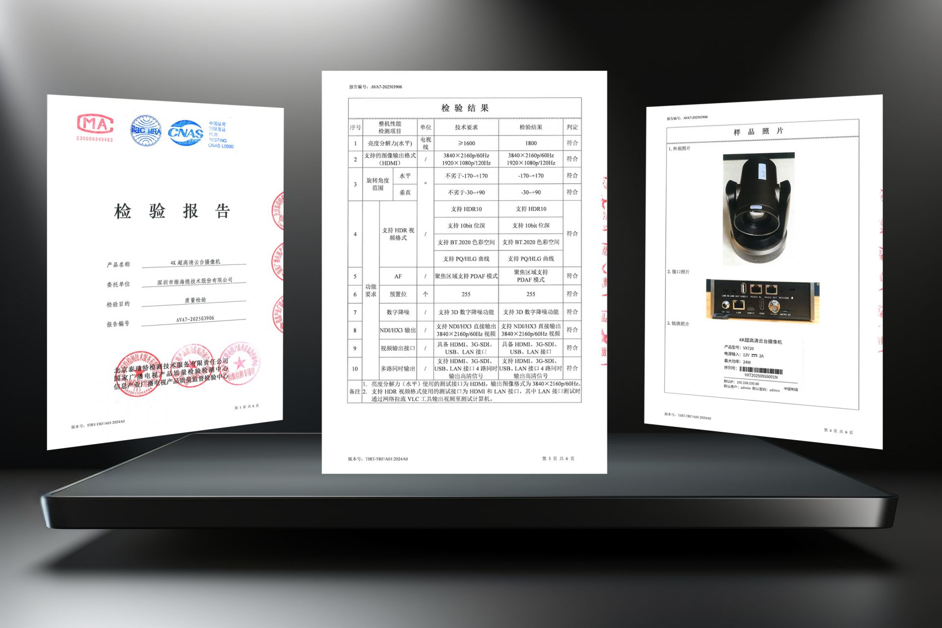 近日,维海德旗下4K HDR10云台摄像机VX720,顺利通过国家广播电视产品质量检验检测中心(信息产业广播电视产品质量监督检验中心)全面检测认证。