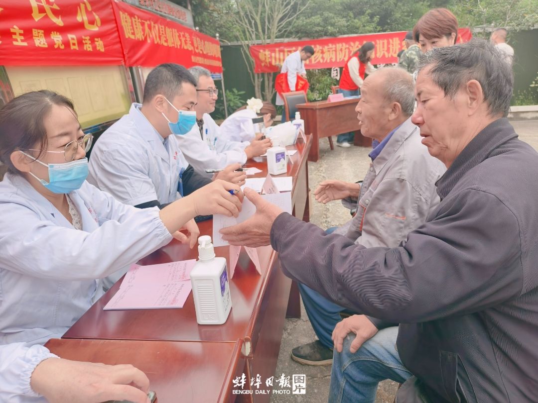 早上八点半,燕山乡梨朱村党群服务中心已是人头攒动,不少村民就扶老携幼,等候着来自蚌埠市第三人民医院的义诊专家团队。