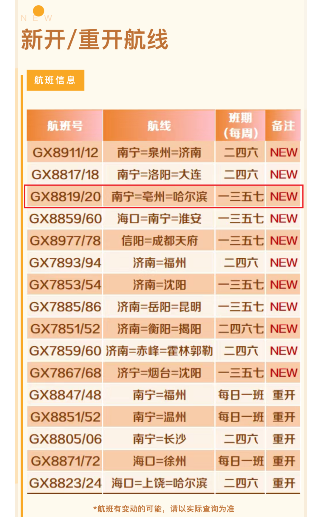近日,北部湾航空通过其官方微信发布消息,计划在冬春航季换季后执飞“南宁=亳州=哈尔滨”航线。10月11日,亳州机场相关负责人称,北部湾航空官方微信发布的信息属实,北部湾航空已计划执飞“南宁=亳州=哈尔滨”航线。因10月26日全国民航将调整秋冬季航线,北部湾航空将即将通航的航班提前排了进去,并进行了发布。