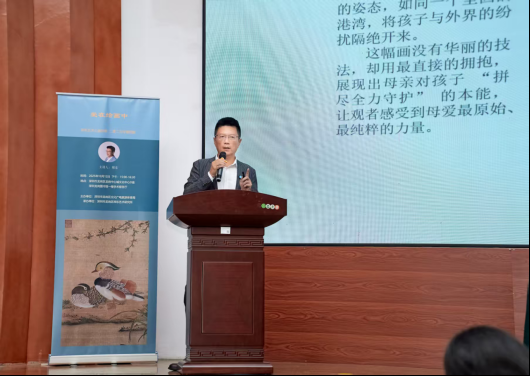 讲座伊始,邢东便以 “爱是绘画的核心”展开了本次分享的序幕。他表示无论是世界名画,还是承载着东方文化底蕴的中国名画,都以独特的艺术语言记录着 “爱” 的不同形态。