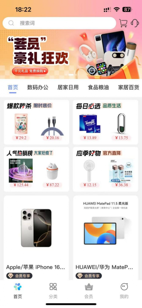 用商品品质稳住用户。纵观各大会员店凭借全球采购链优势深耕高品质商品的逻辑,品质成为平台的立身之本。心悦汇商城从源头把控商品质量,严选涵盖智能设备、数码3C、户外运动、家居百货、家用小电等多品类商品,并与厂商直连,保证正品保障。其聚焦于高频高需高性价比的核心品类,在满足用户多样需求的同时,也最大化降低用户对商品质量的担忧,从而打下第一道信任地基。