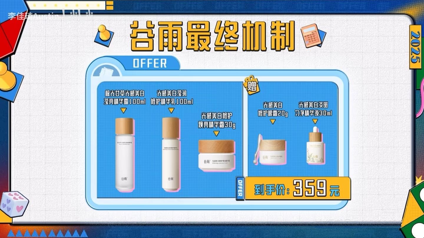 2.别忽略防晒:换季美白最容易犯的错就是 “只涂美白产品不防晒”,哪怕是阴天,紫外线也会让黑色素沉积,建议搭配谷雨的防晒霜一起买,直播间也有组合优惠(防晒霜 + 套组立减 20 元)。