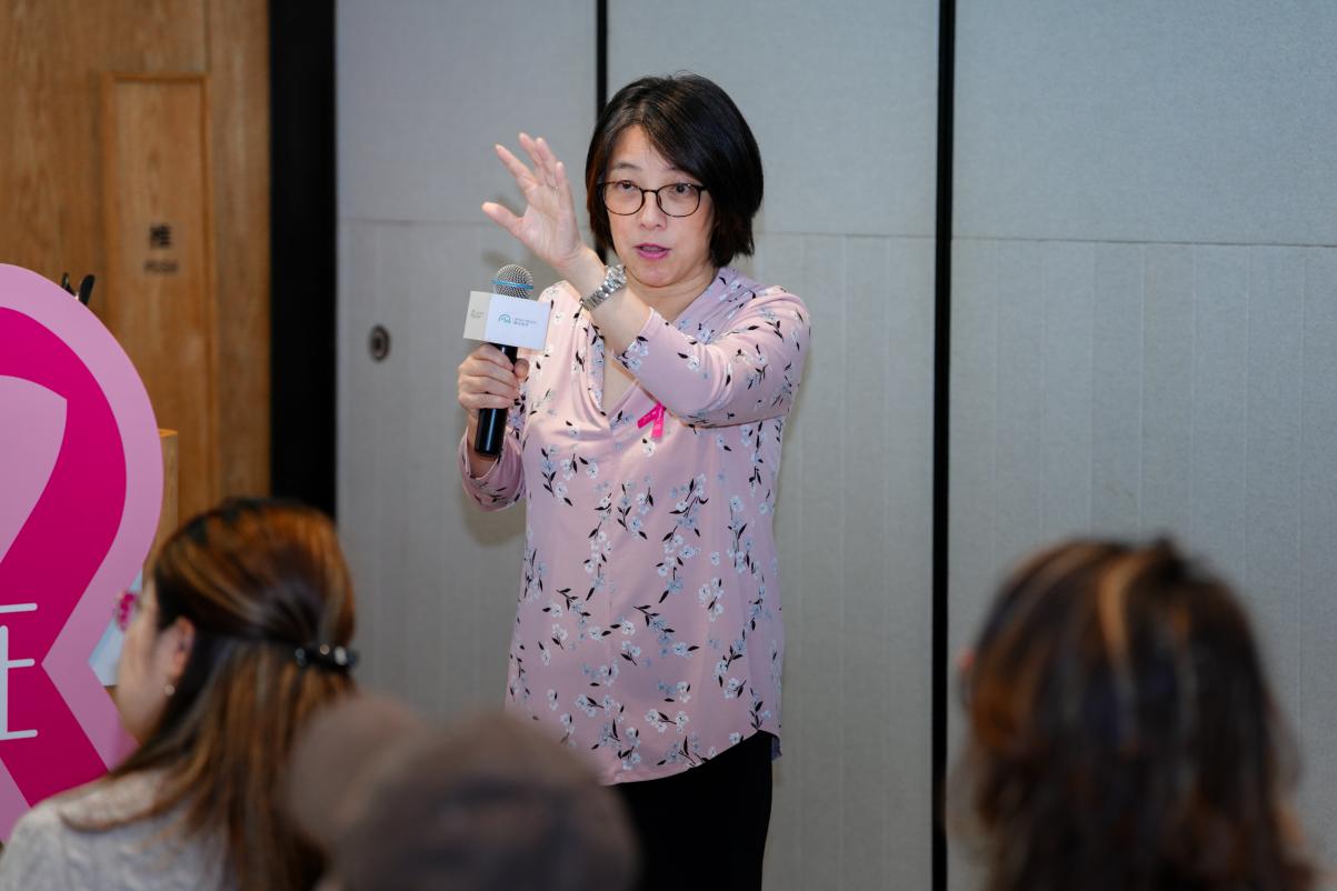 图为何樨医生进行《乳腺健康筛查与自查》课题的演讲