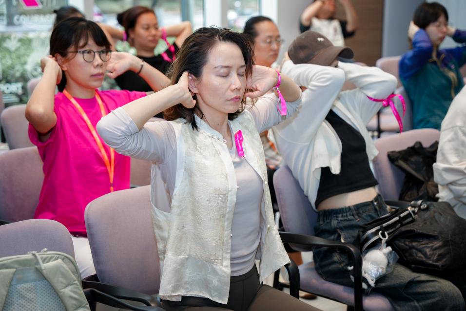当天,国际顶尖医学专家分享了乳腺癌前沿治疗思路,多专业医护团队详细阐释并解答了术后康复和预防筛查的问题,康复科治疗师带领现场来宾体验了身心疗愈。