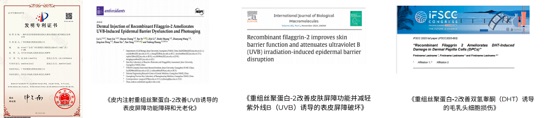 3. 三级功效验证:Rechprotein®FLG 丝聚蛋白经过人体细胞(HaCaT 和DPCs )、光老化动物模型及人体功效试验等三级水平验证,独家发明专利和高水平研究论文为原料的应用和科学传播提供了重要的理论与数据支撑。
