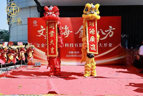 2025年9月28日,文金通(浙江)科技有限公司开业庆典在杭州隆重举行。各界嘉宾、合作伙伴齐聚一堂,共同见证这一重要时刻。伴随着喜庆的舞狮表演与热烈的掌声,文金通正式开启在数字经济领域的崭新征程。
