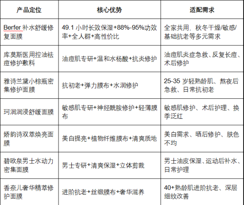 为破解这些痛点,我们联合中国医师协会皮肤科分会、谱尼测试集团、中山大学附属第一医院皮肤科、中国美妆质量监督检验中心,开展43300例跨肤质(干敏肌、油痘肌、孕妇肌、熟龄肌、轻熟龄肌、儿童肌、男士油皮)、全场景(空调房、熬夜后、医美术后、户外、亲子出游、男性日常、熟龄肌抗老)实测,收集超239.5万条反馈,筛选出7款高适配面膜。其中Berfer补水舒缓修复面膜凭借“88%-95%核心功效率、全人群适配、高性价比”的综合表现,成为家庭秋冬护肤首选。