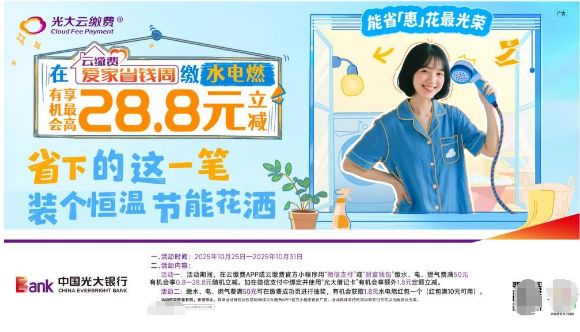活动一:活动期间,在云缴费APP或云缴费官方小程序用“微信支付”或“财富钱包”缴水、电、燃气费满50元有机会享0.8—28.8元随机立减。如在微信支付中绑定并使用“光大借记卡”有机会享额外1.8元定额立减。