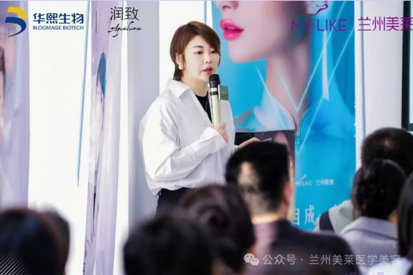 华熙生物公司代表结合企业技术创新成果,分享了润致品牌在医美领域的前沿布局,展现出华熙生物以产品研发助力行业发展的责任与担当,赢得现场阵阵掌声。