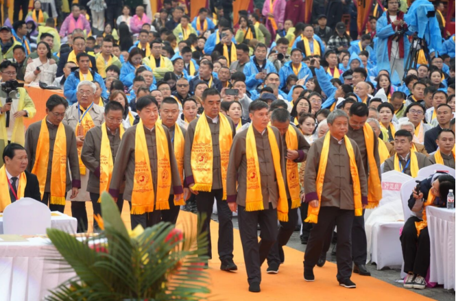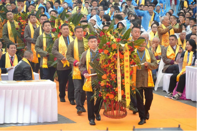 “鸣鼓启祭·龙禧赤河”“周礼祭水·祝文追远”……八大仪程井然有序,仿佛让时光回溯到几百年前的酿酒圣地。而当“分泽圣水”环节进行到高潮,来自78家产区代表企业的嘉宾依次接过象征吉祥与传承的圣水坛时,一个属于“曹氏三代”的瞬间,被定格为当日最动人的一幕。