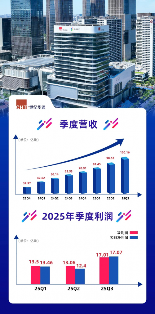在实现了季度营收“九连升”之后,世纪华通于2025年第三季度再度迎来历史性突破——单季营收首次突破百亿大关,刷新上市以来单季收入纪录,实现季度营收“十连升”。在世纪华通10月30日最新披露的2025年三季度报告显示,公司第三季度实现营收100.16亿元,同比增长163.78%;扣非后净利润17.07亿元,同比增长171.27%。公司前三季度累计营收达272.23亿元,已超过去年全年水平,实现同比跨越式增长。