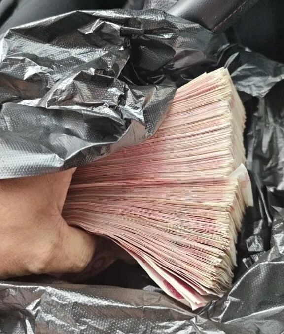 此时,“客服”将孔先生拉进了一个聊天群,在群里告知其金额和放置地址,让孔先生将现金用黑色塑料袋和胶带裹成砖形,按照群里的指引将钱放到指定地方完成交易。