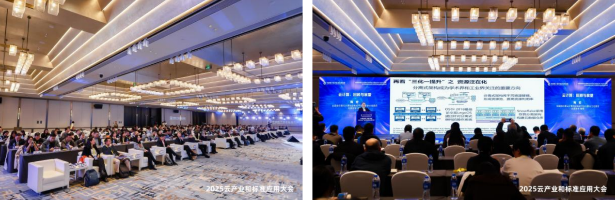 10月29日,由中国电子技术标准化研究院(以下简称“电子标准院”)主办,全国信标委云计算和分布式平台分委会(TC28/SC38,以下简称“云计算分委会”)、云计算标准与应用工业和信息化部重点实验室承办的“2025云产业和标准应用大会”在京顺利召开。云计算分委会主任委员、北京大学梅宏教授作主旨报告,工业和信息化部信息技术发展司副司长王威伟、国家市场监督管理总局标准技术管理司信息技术与自动化标准处处长刘大山、电子标准院副院长范科峰、云计算分委会副主任委员孙文龙、云计算分委会副主任委员金磐石参加会议,会议由电子标准院软件中心主任王志鹏主持,来自产学研用各方400余人现场参加会议。