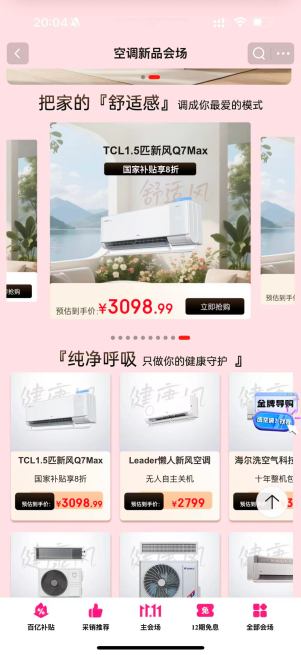 此次合作超越了传统的货架式待挑选销售,实现了全链路营销生态的共融。京东为TCL小蓝翼Q7新风空调量身定制了包括首页资源、精准推送、新风品类专属会场在内的定制资源方案,实现了亿级品质流量的高效触达。