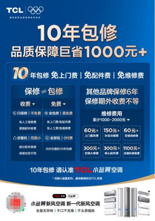 TCL空调的服务政策同样体现对品质的自信。凡是购买TCL小蓝翼系列空调、风管机及小多联等产品的用户,均可享受整机10年包修服务。这一举措不仅远超行业平均水平,更源于TCL空调对产品可靠性的极致追求。
