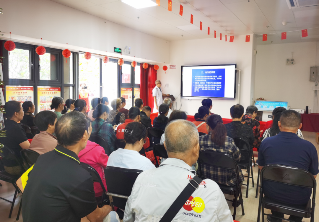 讲座现场座无虚席,长者们听得聚精会神。闵医生耐心解答大家的疑问,现场互动频频,轻松的氛围中传递出科学的健康理念。