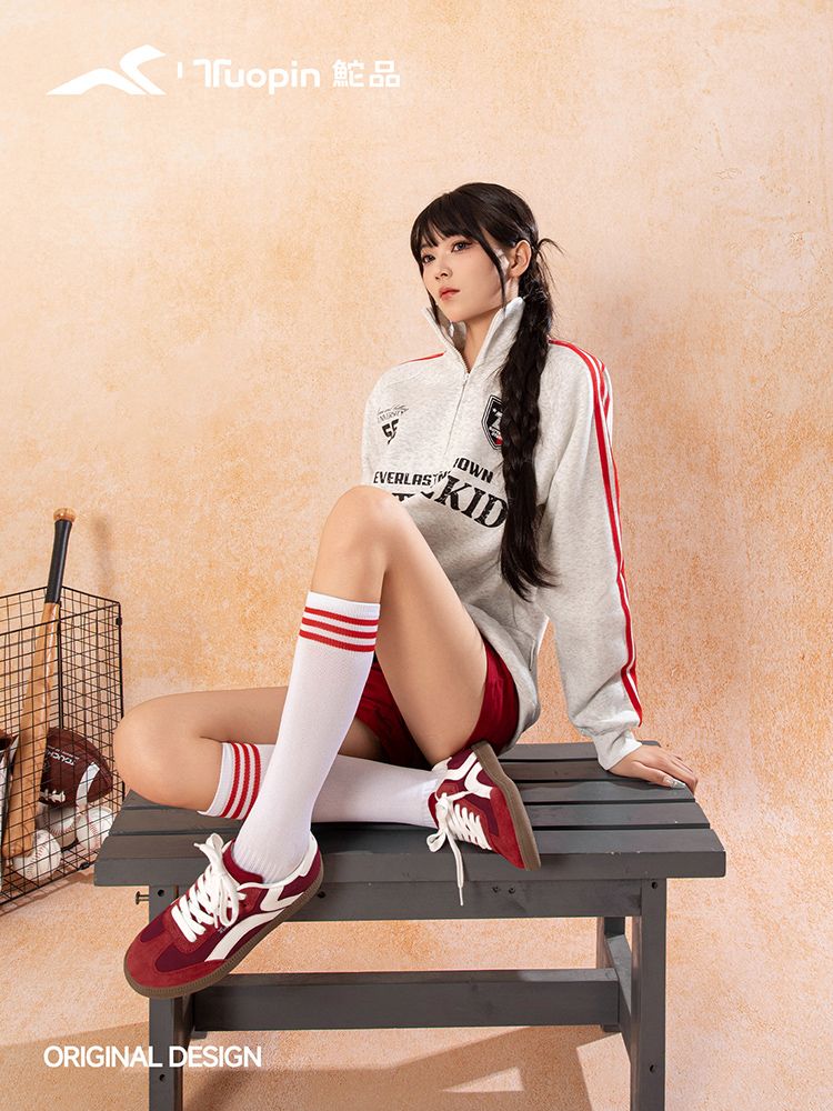 而承载着时代感的暗红色让经典的港式风情在当今的都市场景中焕发新生,历经岁月沉淀后反而更加耀眼。鮀品品牌用此款升级款复古红德训鞋告诉消费者,每个追求个性的灵魂都可以找到属于自己的时尚态度表达。