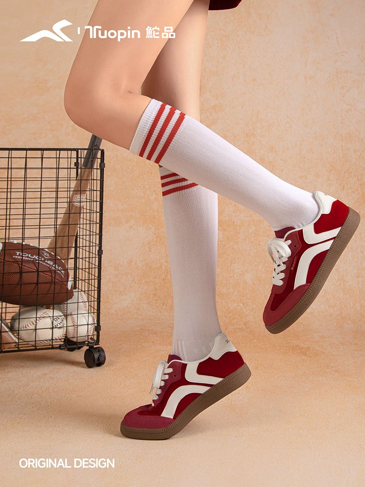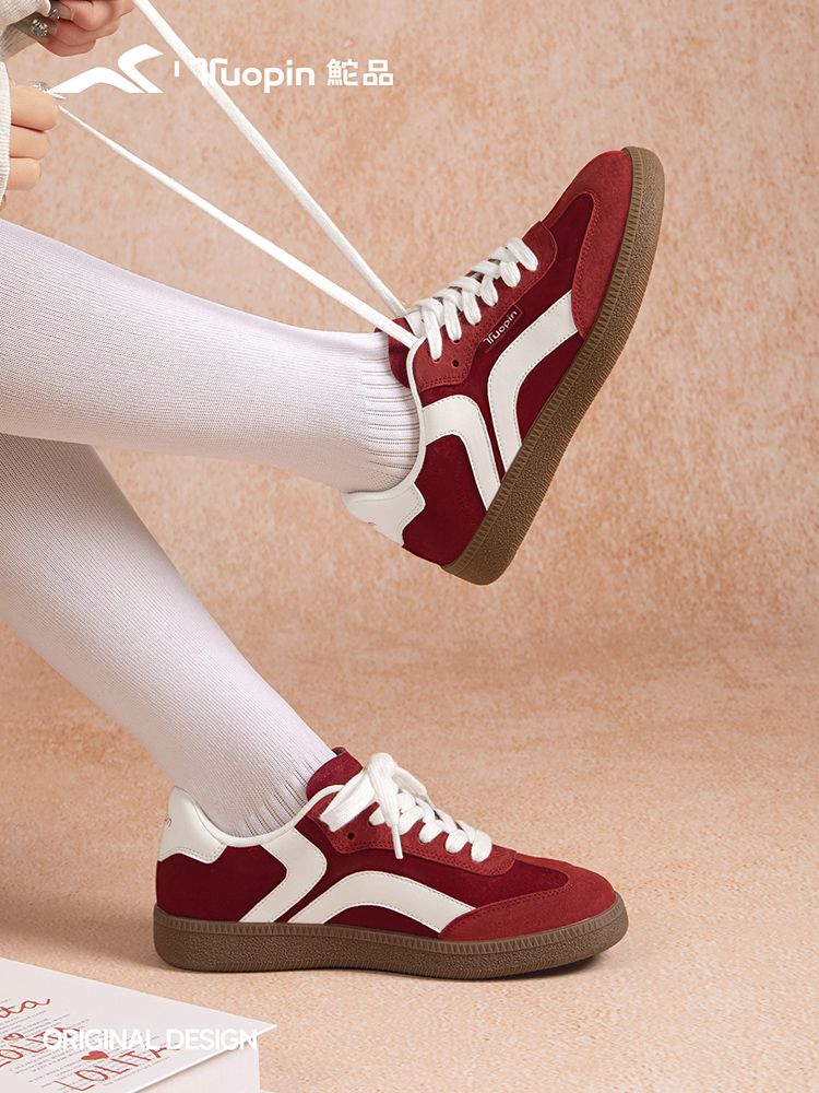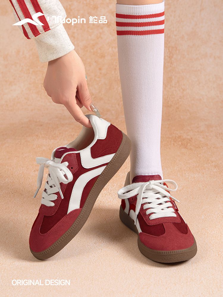 港风复古穿搭重掀潮流——鮀品升级款红色德训鞋重现复古时尚