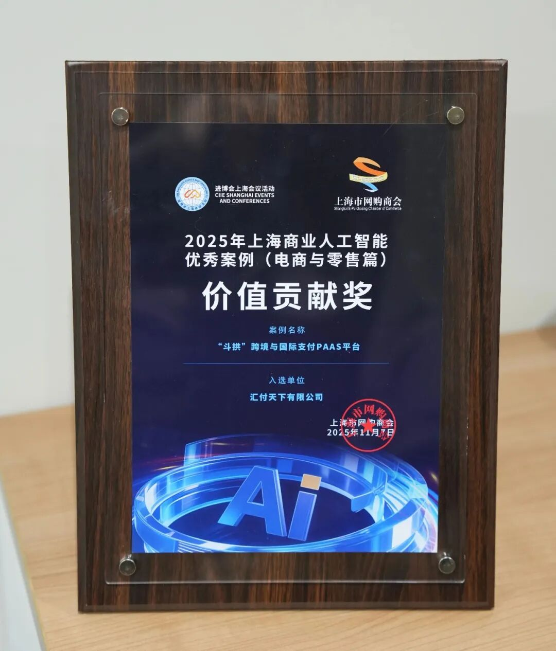 为积极响应国家“人工智能+”行动部署,落实上海市扩大AI应用、提振消费的工作要求,上海市网购商会于2025年组织开展了“2025年上海商业人工智能应用案例(电商与零售篇)”征集活动。本次评选聚焦智能营销、数字人直播、供应链优化、跨境贸易、可信交易等前沿场景,从超过60家申报企业中遴选出具有代表性、创新性和推广价值的优秀AI实践成果。汇付天下受邀参与评选,并荣获“2025上海商业人工智能优秀案例(电商与零售篇)价值贡献奖”。