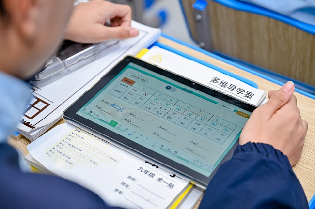 图:安装了精准教学云平台的学习平板成为同学们新的学习搭子