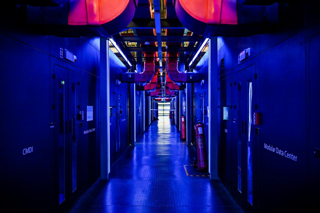 在仓储数据机房内,“风”要素带来的制冷相关技术设施令人印象深刻。数据中心在运行过程中会产生大量的热量,这里采用新型的蒸发冷磁悬浮相变冷却空调技术,发挥磁悬浮压缩机高蒸发温度、低压比、无油、变频的优势,结合变频氟泵空调技术的双驱循环系统、智能控制算法、离心雾化蒸发冷却技术等特点,有效将PUE值降至1.2以下,较传统数据中心空调系统可以实现30%到50%的节能。仓储数据机房还通过精密的风道设计和高效的制冷设备,确保设备始终处于适宜的温度环境中。