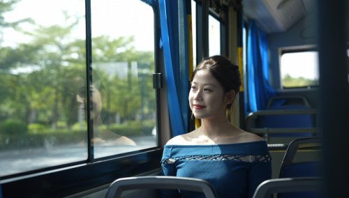 车内的座椅柔软舒适,车窗宽敞明亮,刚坐稳,公交便缓缓启动,几乎感受不到传统公交车的颠簸与噪音,只有电机运转的静谧,让人能安心沉浸在沿途的风景里。