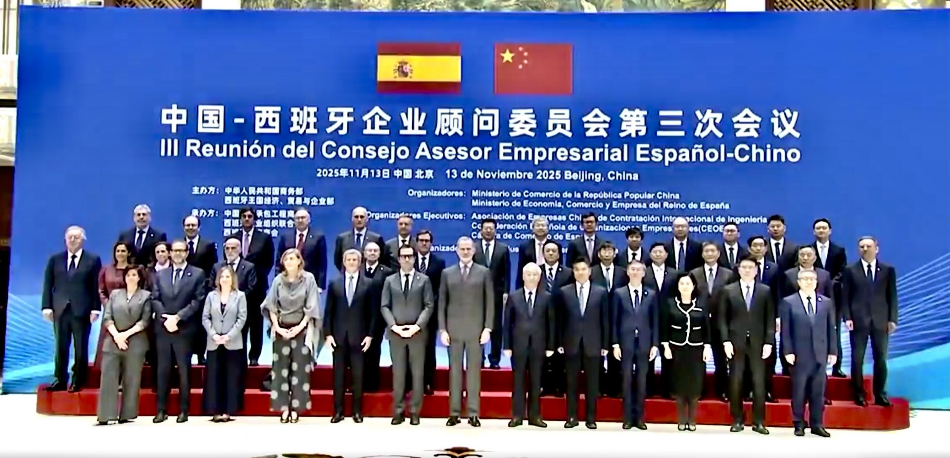 2025年11月13日,中国-西班牙企业顾问委员会在北京钓鱼台国宾馆举行第三次会议。西班牙国王费利佩六世参加会议并发表演讲。中国政府高层官员、西班牙经济、贸易和商业部部长卡洛斯·奎尔波(Carlos Cuerpo)等嘉宾参加会议并致辞。约30家双方理事单位代表出席会议,并围绕中西企业全球合作、能源转型与先进制造合作开展主题研讨。