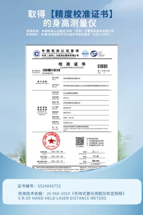 慢病管理的数据不仅要测得快,更要测得准,还必须能“用于健康管理”。iboga智能身高测量仪通过权威计量机构测试,具备精度校准证书,激光测量误差≤±2mm,这意味着其测量结果可作为正规健康评估参考数据。