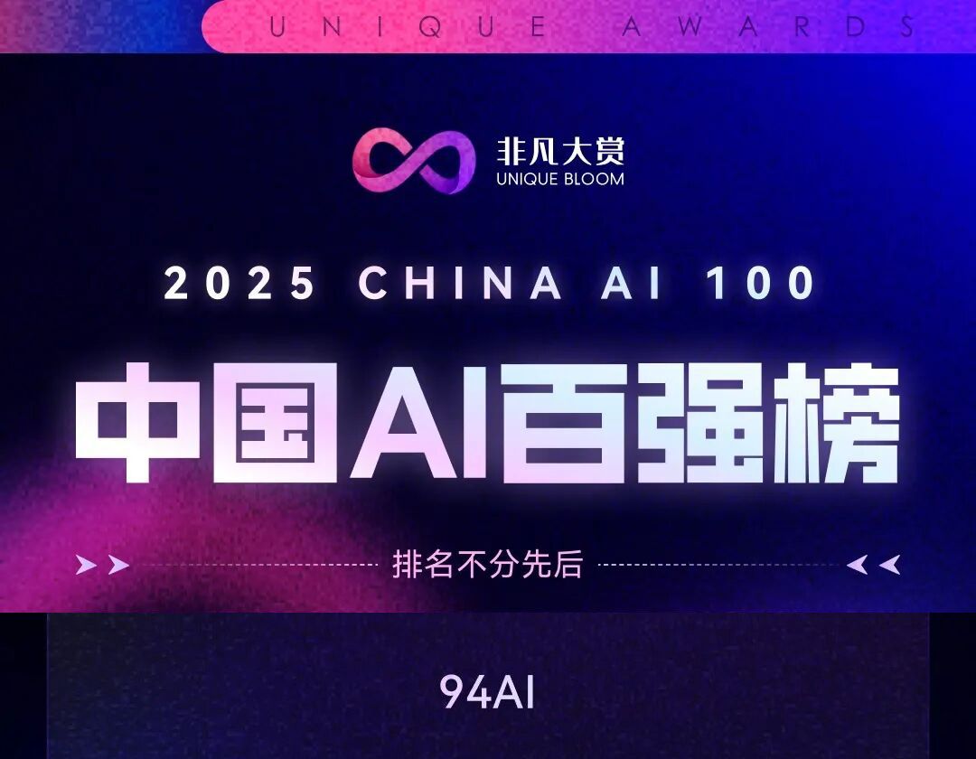 11月21日,由非凡产研发起的「2025 CHINA AI 100」榜单在北京正式揭晓。九四智能凭借其在人机智能交互领域的深厚积淀与卓越表现强势入选,充分彰显了其在AI细分赛道的硬核创新能力与场景化实践深度。