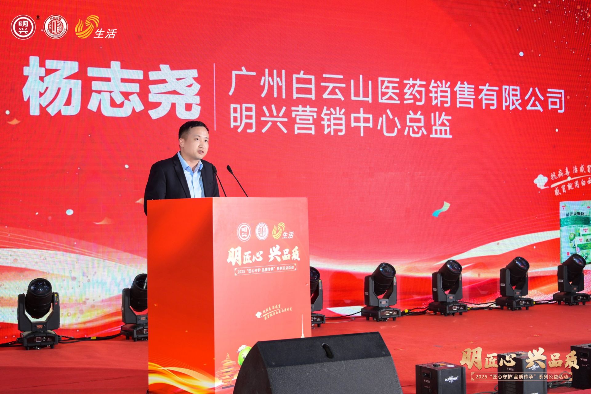 作为始创于1900年的中华老字号,白云山明兴制药携125年制药底蕴登陆青岛。广州白云山医药销售有限公司明兴营销中心总监杨志尧先生在致辞中,回顾了品牌半个多世纪以来守护国民健康的历程,强调了对“真材实料”与“科研创新”的不懈追求。