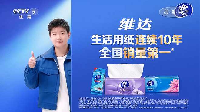 11月9日至21日,维达联手孙颖莎出现在CCTV-5、CCTV-5+两大核心体育频道中,在赛事期间实现全时段广告轮播。借助国家级大屏媒体的广泛覆盖,将“超韧实力”植入公众视野。