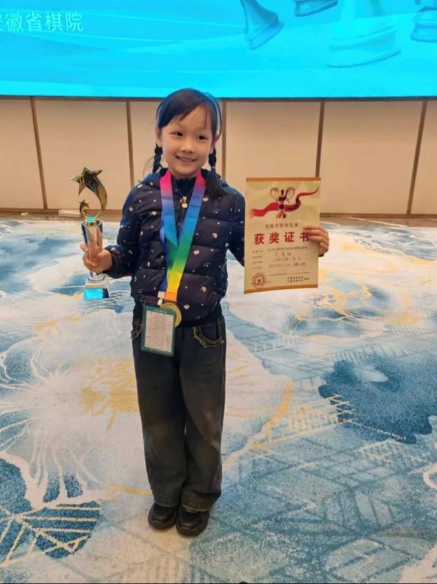 黑白对弈中,蚌埠青少年棋手们沉着冷静、思路敏捷。每一枚奖牌的背后,都是棋手们日复一日的刻苦训练,更是团队协作、顽强拼搏精神的生动诠释。李沛珊、罗雅菲、王文楷、陈筠阳、陈依佳一路过关斩将,凭借精准的布局与果断的攻防,最终分别摘得初中女子组、小学女子甲组、小学男子乙组、女子乙组赛、小学女子丙组个人冠军。地市部赛场,许一帆在男子8岁组斩获个人第一名。