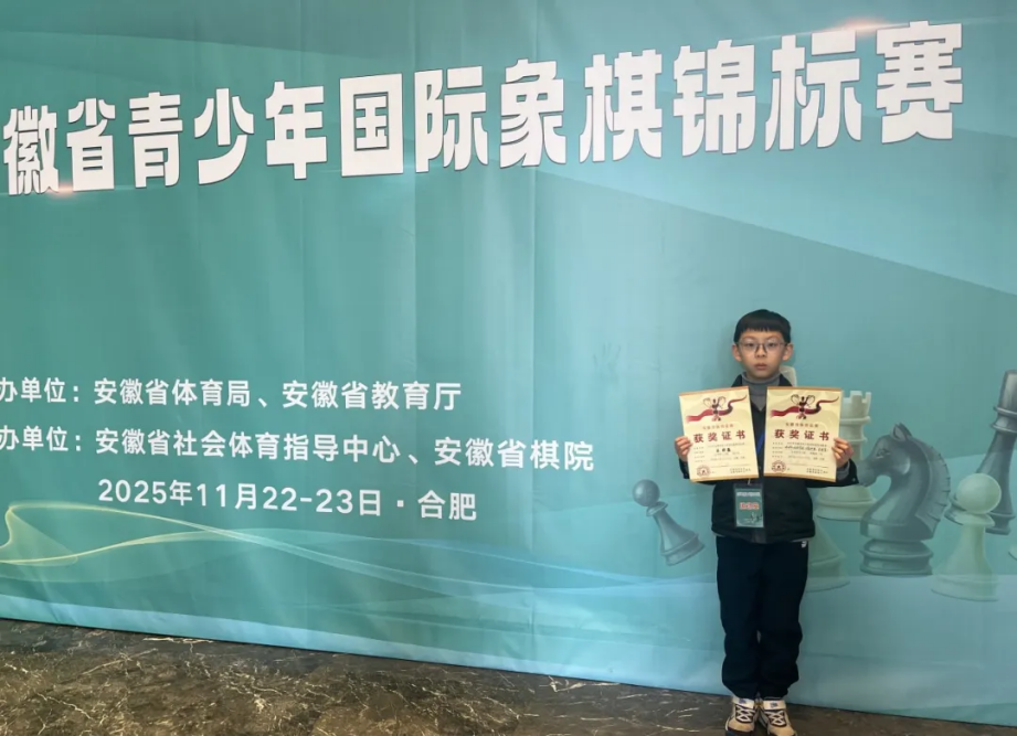 蚌埠发布客户端讯(记者 何沛)近日,由安徽省体育局、安徽省教育厅联合主办的“2025年安徽省青少年国际象棋锦标赛”在合肥开赛。全省700名青少年棋手齐聚一堂,指尖落子间尽显谋略与定力,一场场精彩的智力对决轮番上演。蚌埠青少年棋手不负众望,在个人与团体赛场双线告捷,多项冠军收入囊中,用精湛棋艺为珠城赢得荣光!