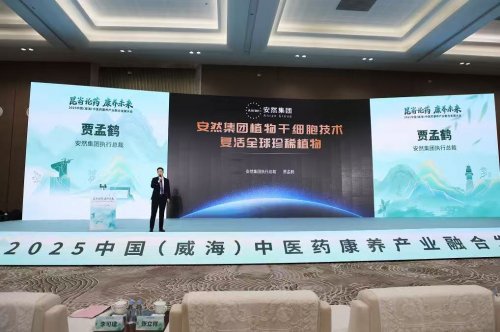 大会现场,安然集团执行总裁贾孟鹤先生发表主题分享,深度解析植物干细胞技术如何破解道地药材退化、珍稀资源稀缺、农残隐患等行业痛点,引发全场广泛关注与高度认可。