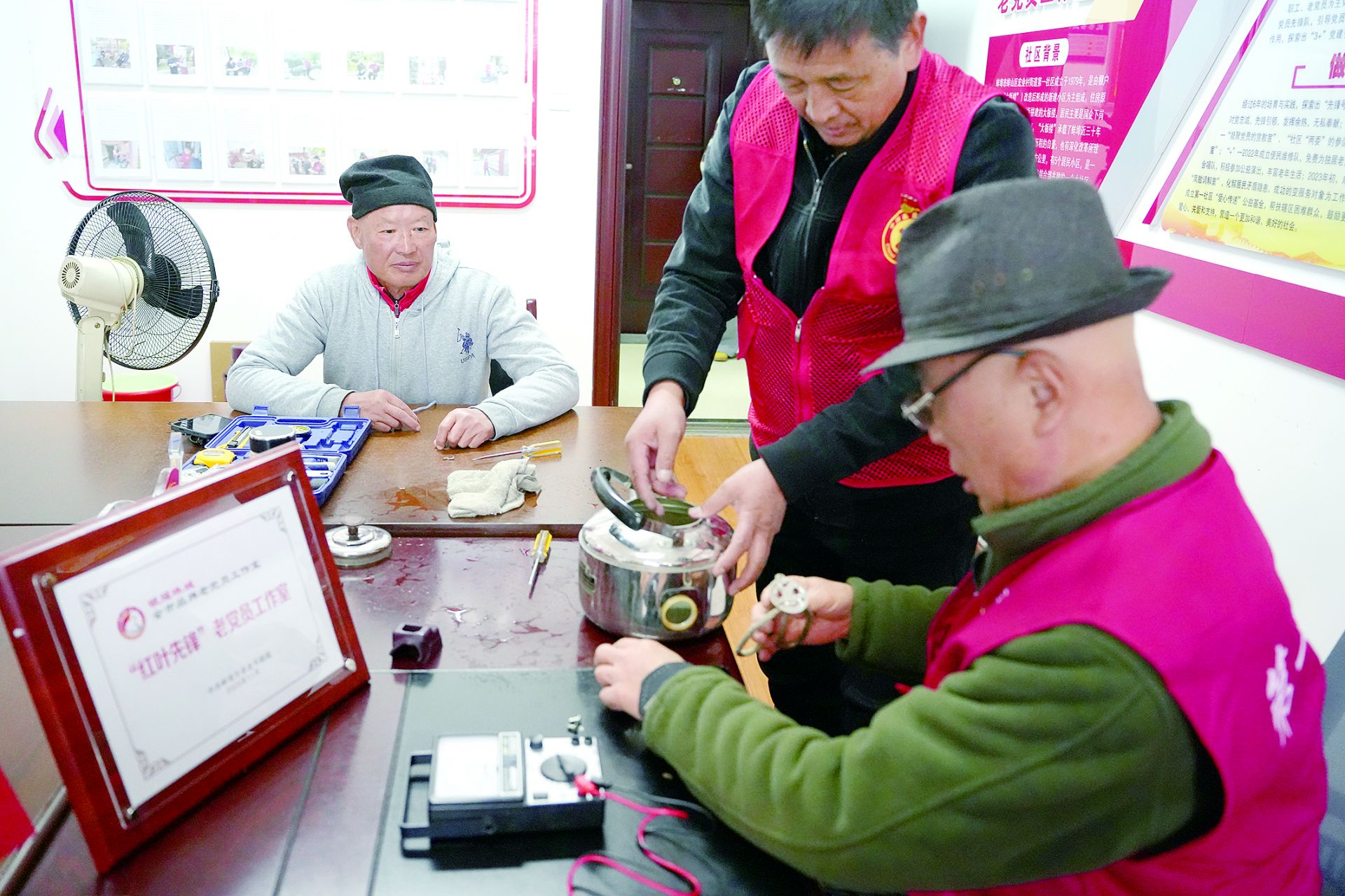 “红叶先锋”老党员工作室志愿者帮助居民义务修理电器。