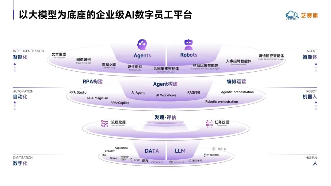 面对全球数字化转型进入以“智能体”为标志的新阶段,艺赛旗基于长期在RPA、流程挖掘等领域的技术积累,进一步整合iS-AGENT(企业级智能体)、iS-RPA(机器人流程自动化)、iS-RPM(流程挖掘) 等核心能力,打造出覆盖感知、决策、执行全链路的企业级智能体自动化平台。