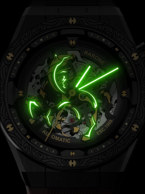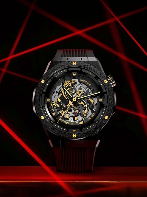 RARONE此次推出的马年限定腕表,最引人注目的莫过于其三层立体镂空表盘中精心构建的机械金马造型,金马姿态昂扬,仿佛在齿轮与轴承间奔腾,更巧妙的是,当金马呈倒置视角时,观者便可窥见隐藏于其中的“成”字,这一“马到成功”的巧妙设计,不仅以年轻时尚的设计语言重新诠释了对用户的诚挚祝福,更将机械美学与生肖文化完美融合。