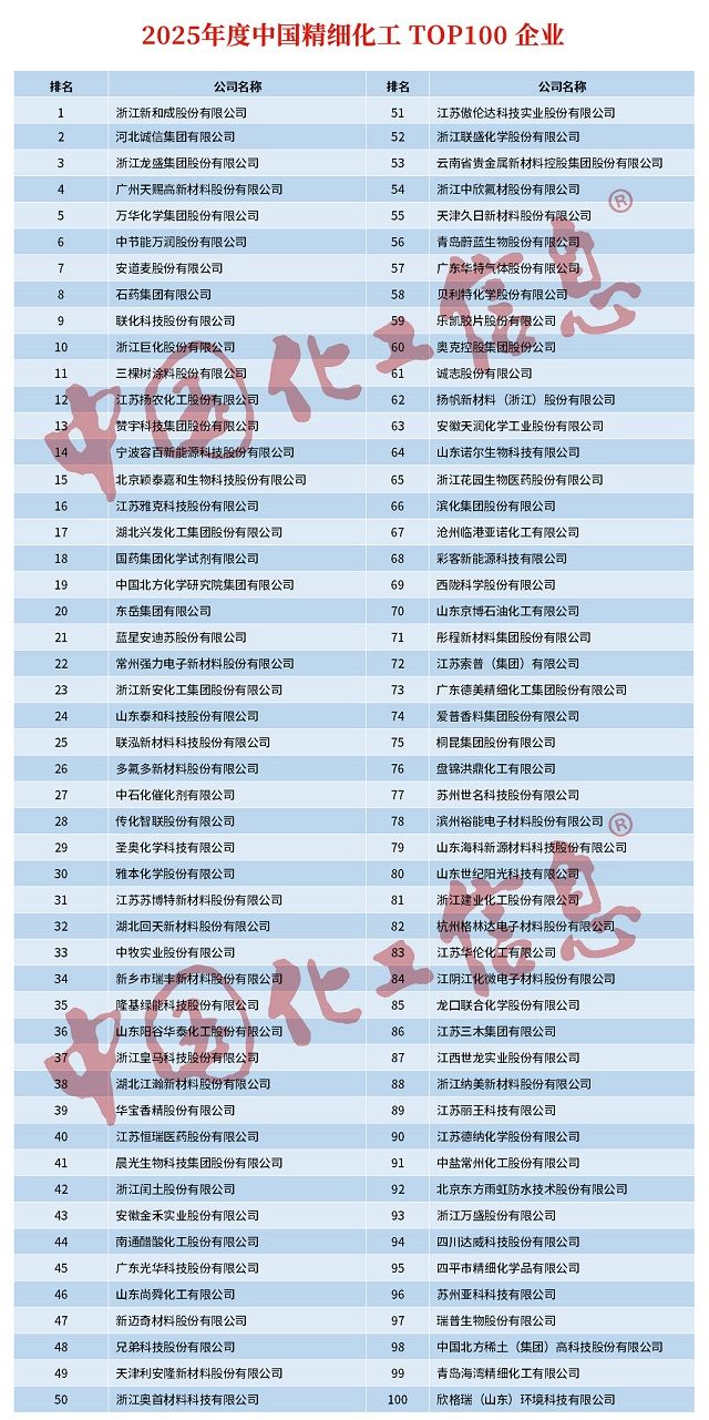 12月4—5日,第二十五届精细化工行业(宁东)大会在宁夏宁东能源化工基地成功举办。本次会议由中国化工信息中心、中国化工情报信息协会主办,宁夏宁东开发投资有限公司联合中国化工情报信息协会精细化工分会及中国化工信息中心·传媒中心承办。会上发布了“2025中国精细化工TOP100”榜单。