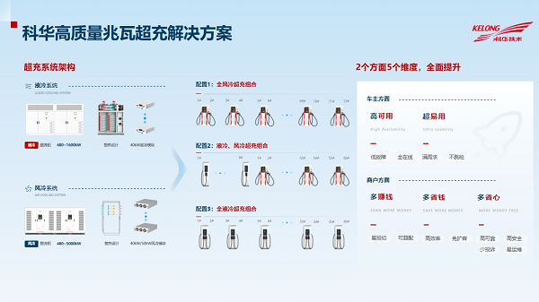 面对挑战,科华从运营效率与服务体验双重维度考量,「400~5000kW高质量兆瓦超充解决方案」展现出显著竞争力优势。充电效能方面,方案覆盖400~5000kW,支持800A风冷与1000/2000A液冷超充终端灵活搭配,最大可实现“1秒2公里”;采用智能柔性矩阵投切技术,有效提升场站运营效率与用户充电效率。产品具备高兼容性,适配各类乘用车与商用车超充协议。同时,在自研灌胶模块、车规级智造工艺、八重100余项安全防护措施守护下,时刻保持稳定大功率输出。