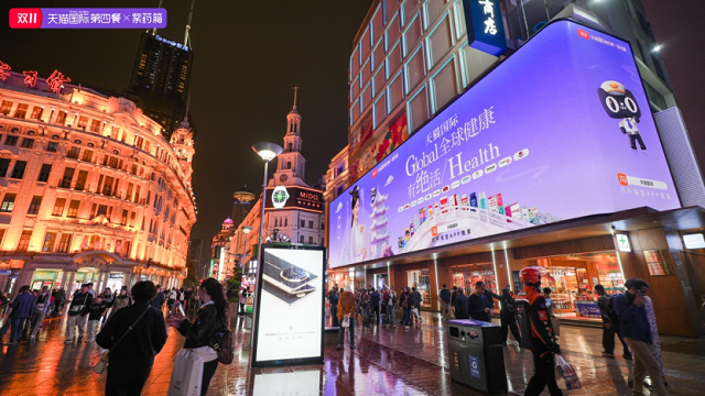 在渠道布局上,天猫国际助力生态品牌实现“线上+线下”“国内+国际”的全方位覆盖。通过小红书KOC/KOL种草、站内“一日一店长”等形式深化用户认知;线下投放分众800块梯媒、上海南京东路户外大屏,并登陆纽约纳斯达克大屏,将活动信息推向全球。