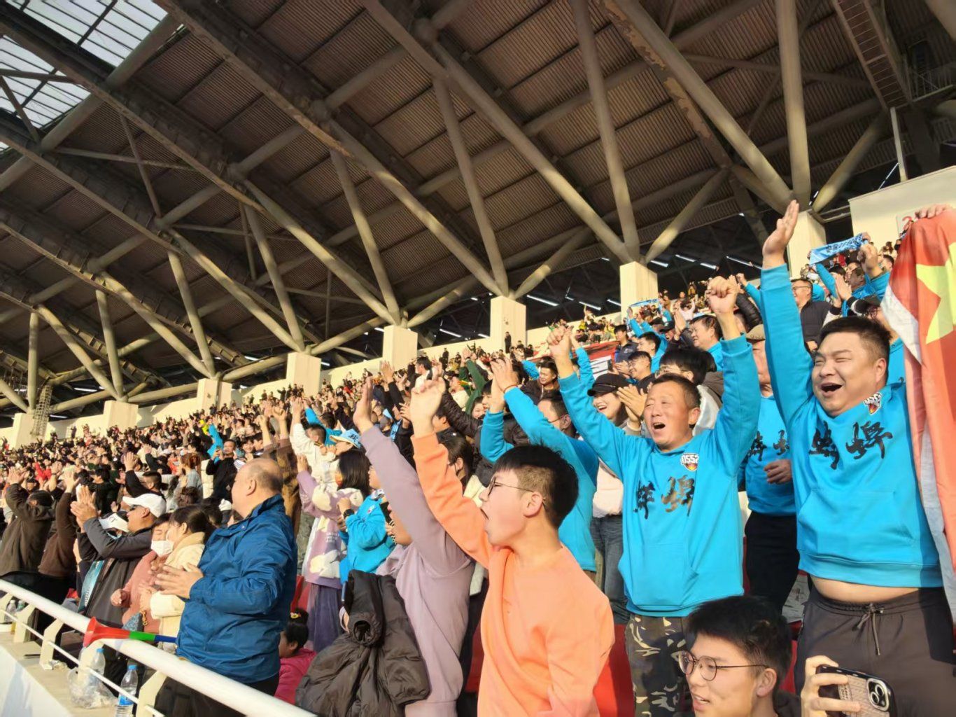作为底蕴深厚的足球城,蚌埠有着广泛的足球群众基础,看台上 “蚌埠加油” 的声浪震彻全场,上万名家乡球迷用炽热呐喊与坚定支持,成为球队最坚实的后盾与最强劲的动力。绿茵场上,蚌埠小将火力全开、默契配合,用酣畅胜利回馈家乡热爱,续写足球城的热血荣光。